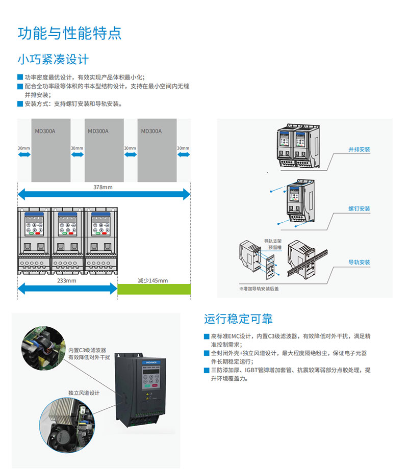 內(nèi)置 C3 級(jí)濾波器,有效降低對(duì)外干擾,滿足精準(zhǔn)控制需求