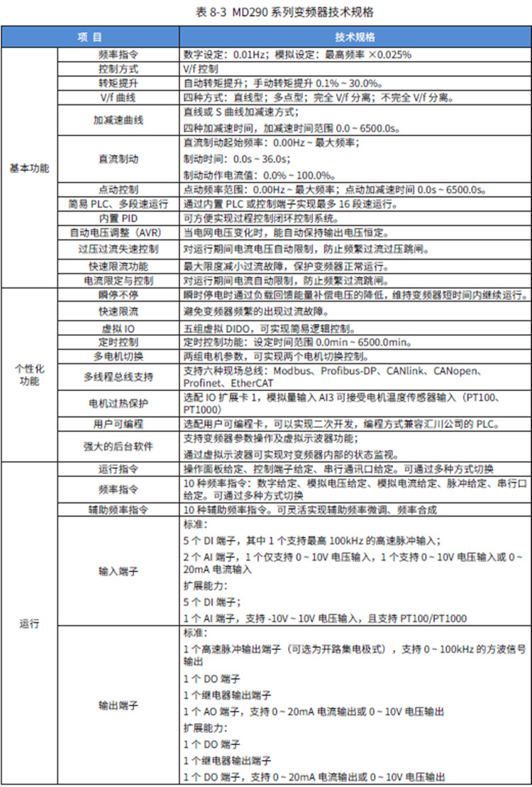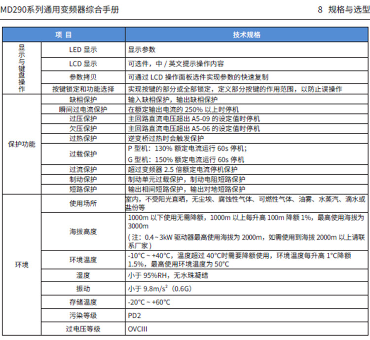 MD290 系列變頻器是一款通用型變頻器,可以輕松驅(qū)動(dòng)和控制異步電機(jī),具備用戶可編程功能及后臺(tái)軟件監(jiān)控、通訊總線功能,體積小,功能強(qiáng)大,性能穩(wěn)定,滿足國(guó)際主流標(biāo)準(zhǔn)和認(rèn)證??蓱?yīng)用于紡織、造紙、拉絲、機(jī)床、包裝、食品、風(fēng)機(jī)、水泵等行業(yè)及各種自動(dòng)化生產(chǎn)設(shè)備的驅(qū)動(dòng)。